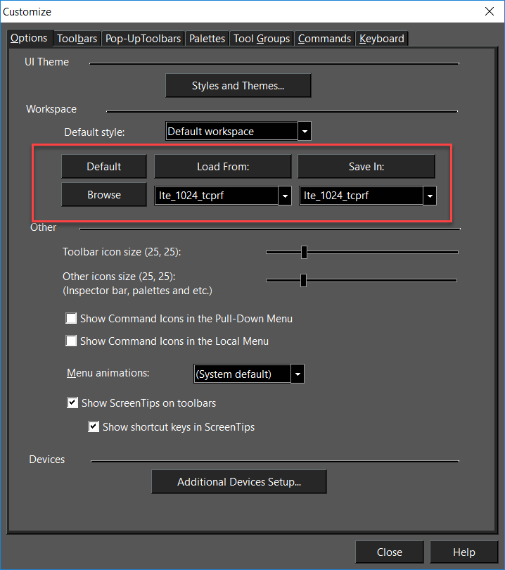 You can save the interface file in TurboCAD. For that go to Tools-> Workspace-> Customize-> Options.