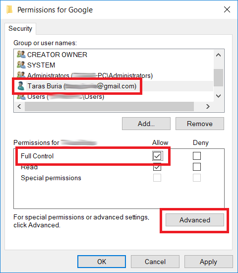 - Next, click Add, type your account email and click Check Names. Press OK;