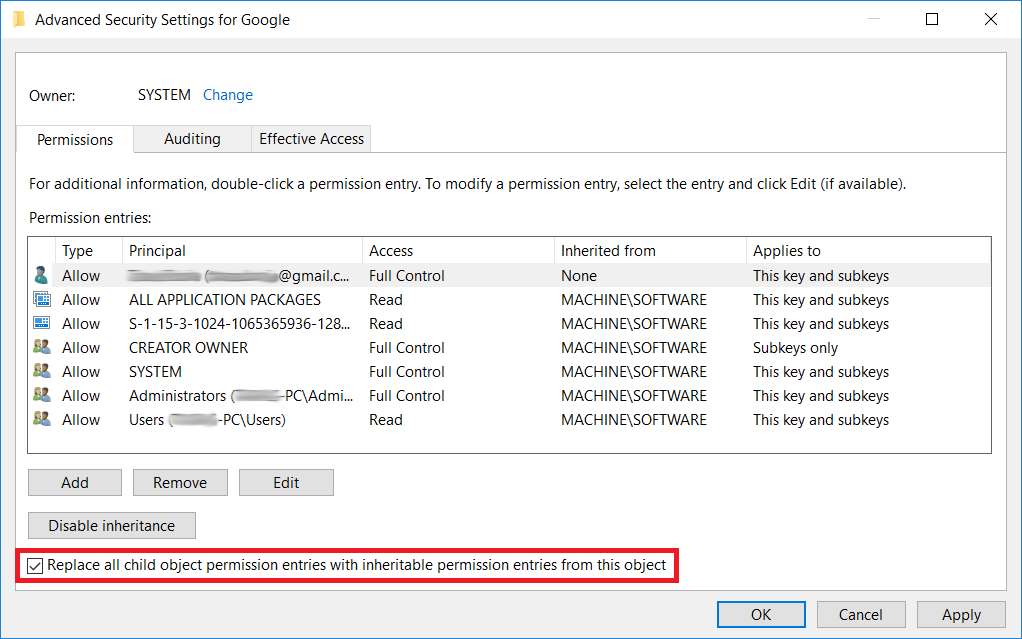 - Click SYSTEM and check if Full Control permission is allowed;